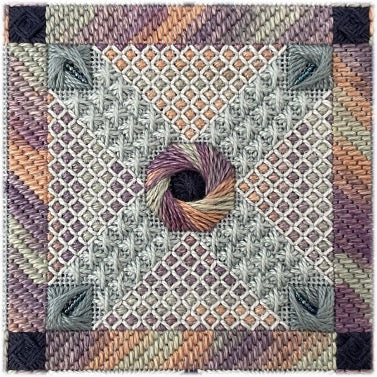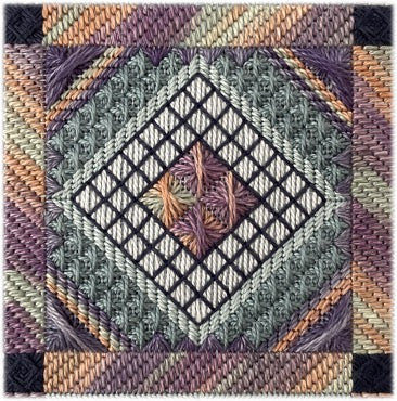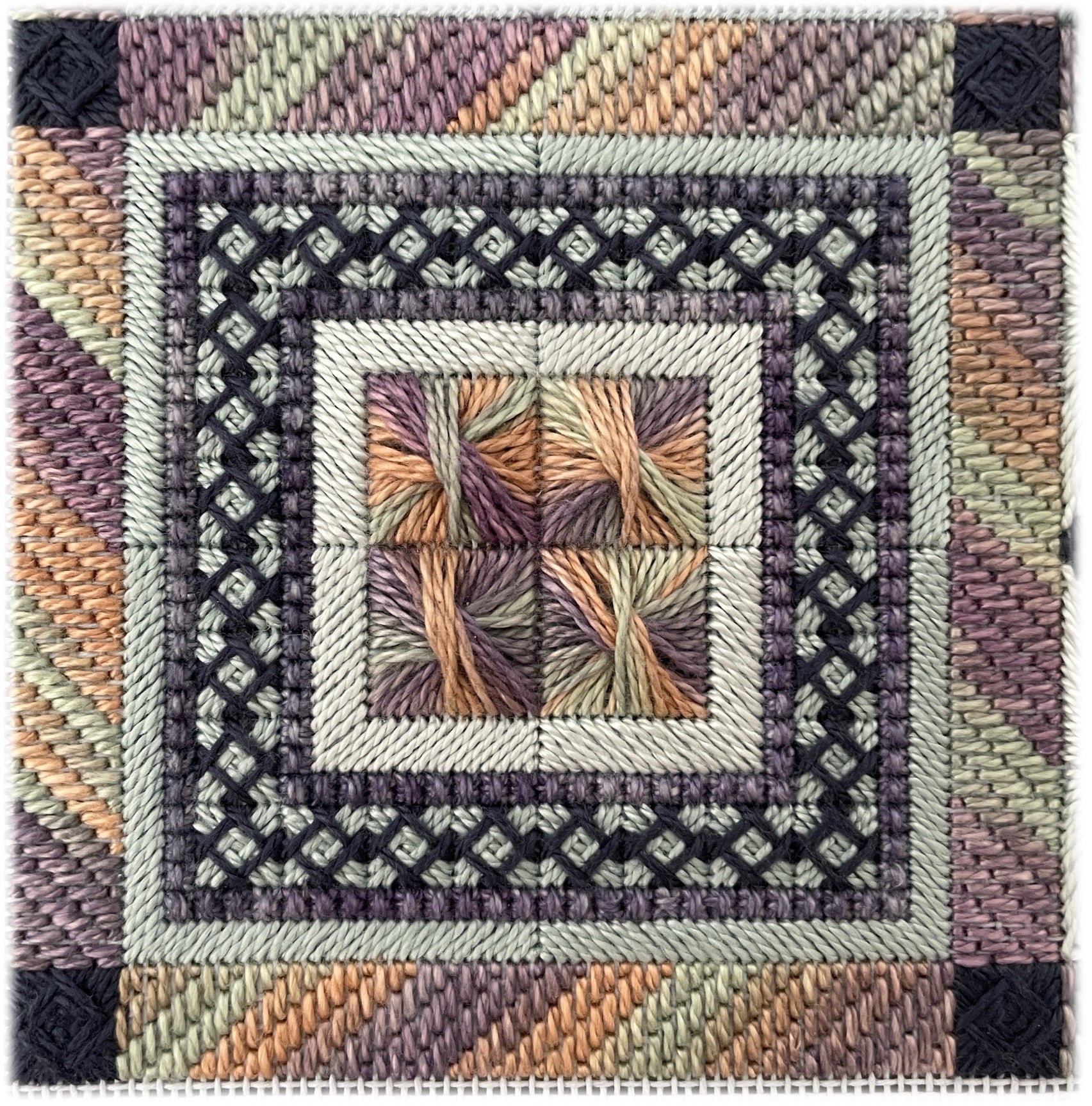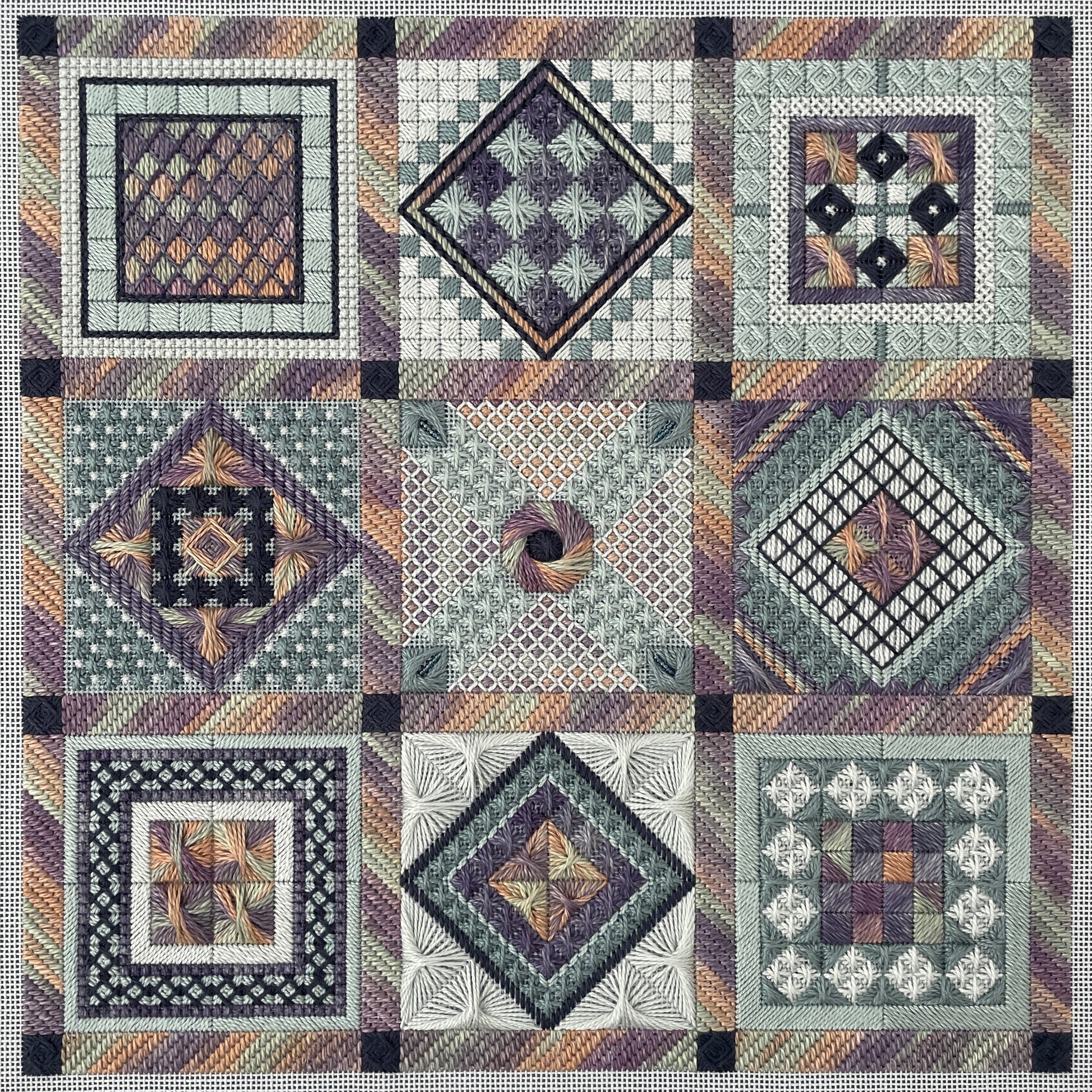 Tidbits is a series of nine little squares worked on 18 count mono canvas.