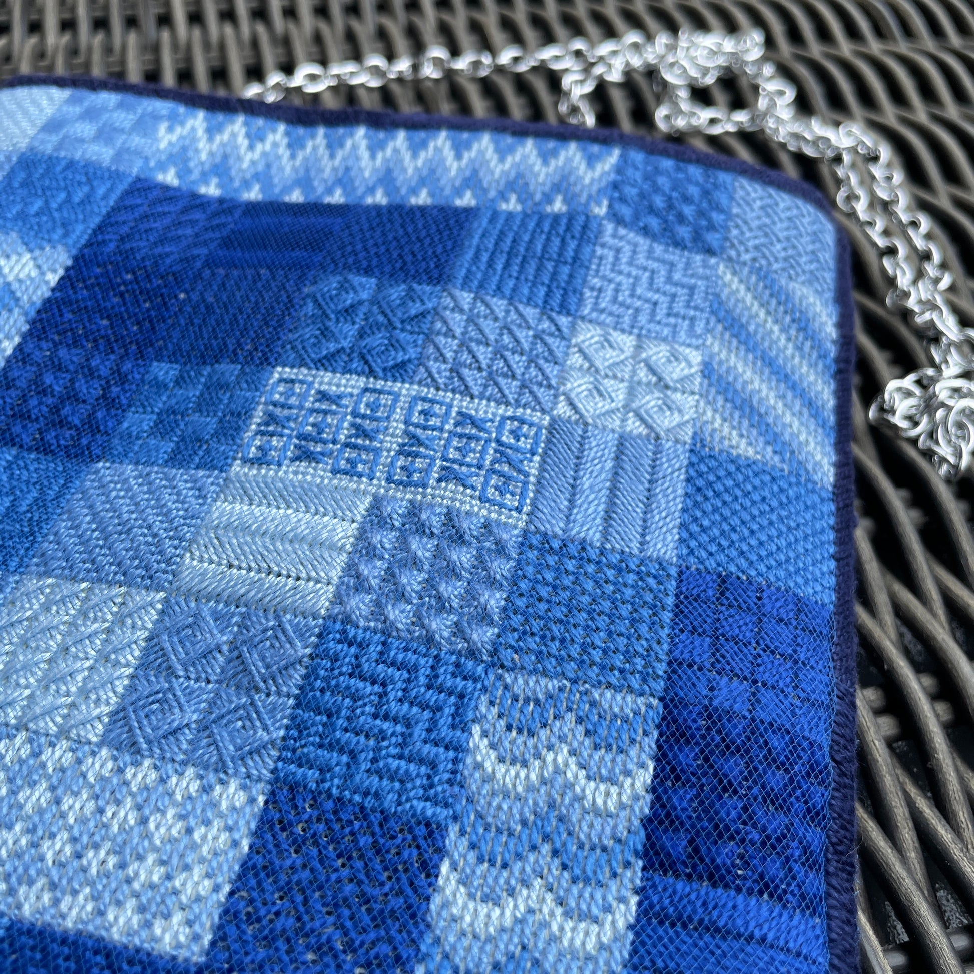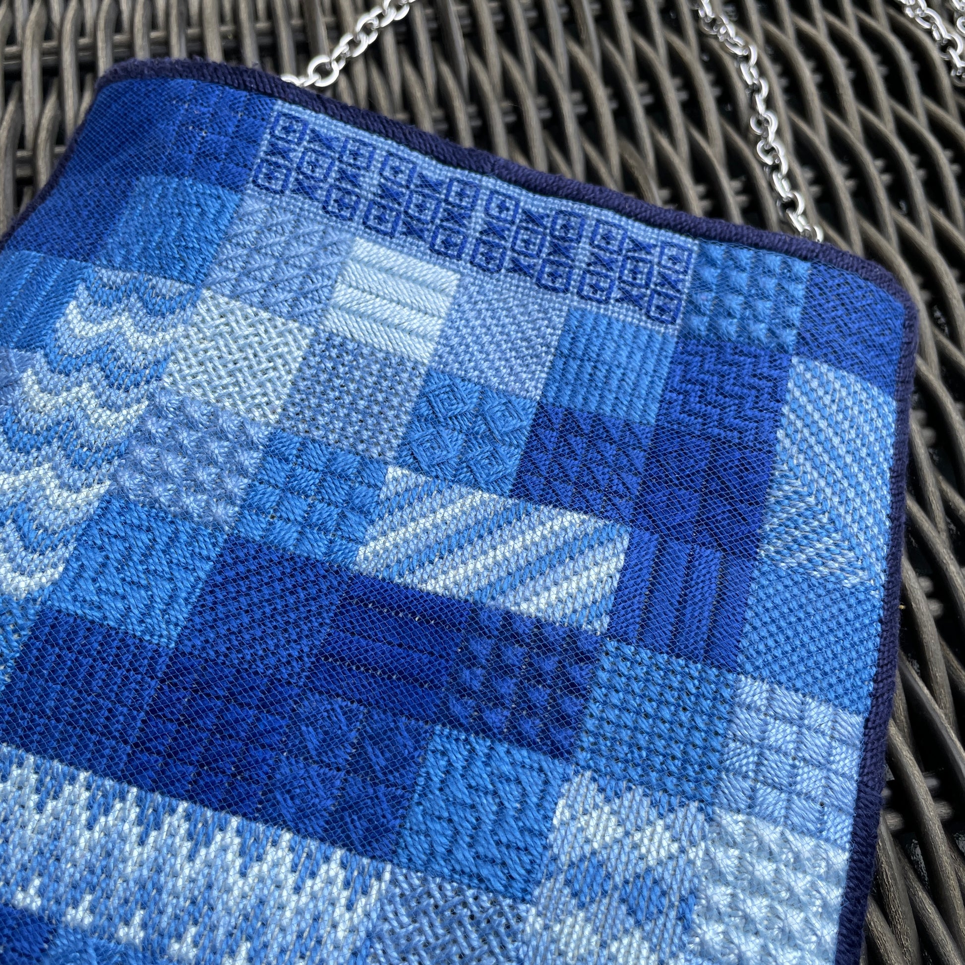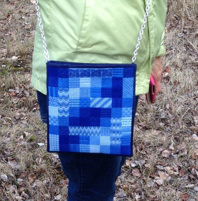 Just big enough to carry a pocket book, your reader or a mini tablet. This stunning bag is stitched on 18 count canvas using just 6 different DMC Perle cottons. To keep things interesting, each side of the bag is just a little different! The stitch count is 136 x 315 which of course is folded in half.